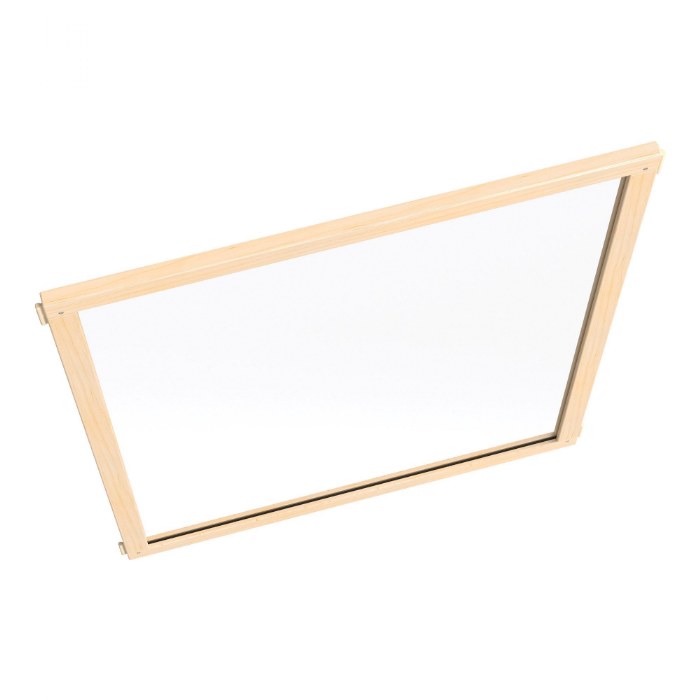 This See-Thru panel helps create or define a space for your unique needs. This clear plexiglas panel allows for supervision and interaction with the children. Panel measures 24.5"H x 48"W x 1"D. Works with other Create-A-Space™ components.