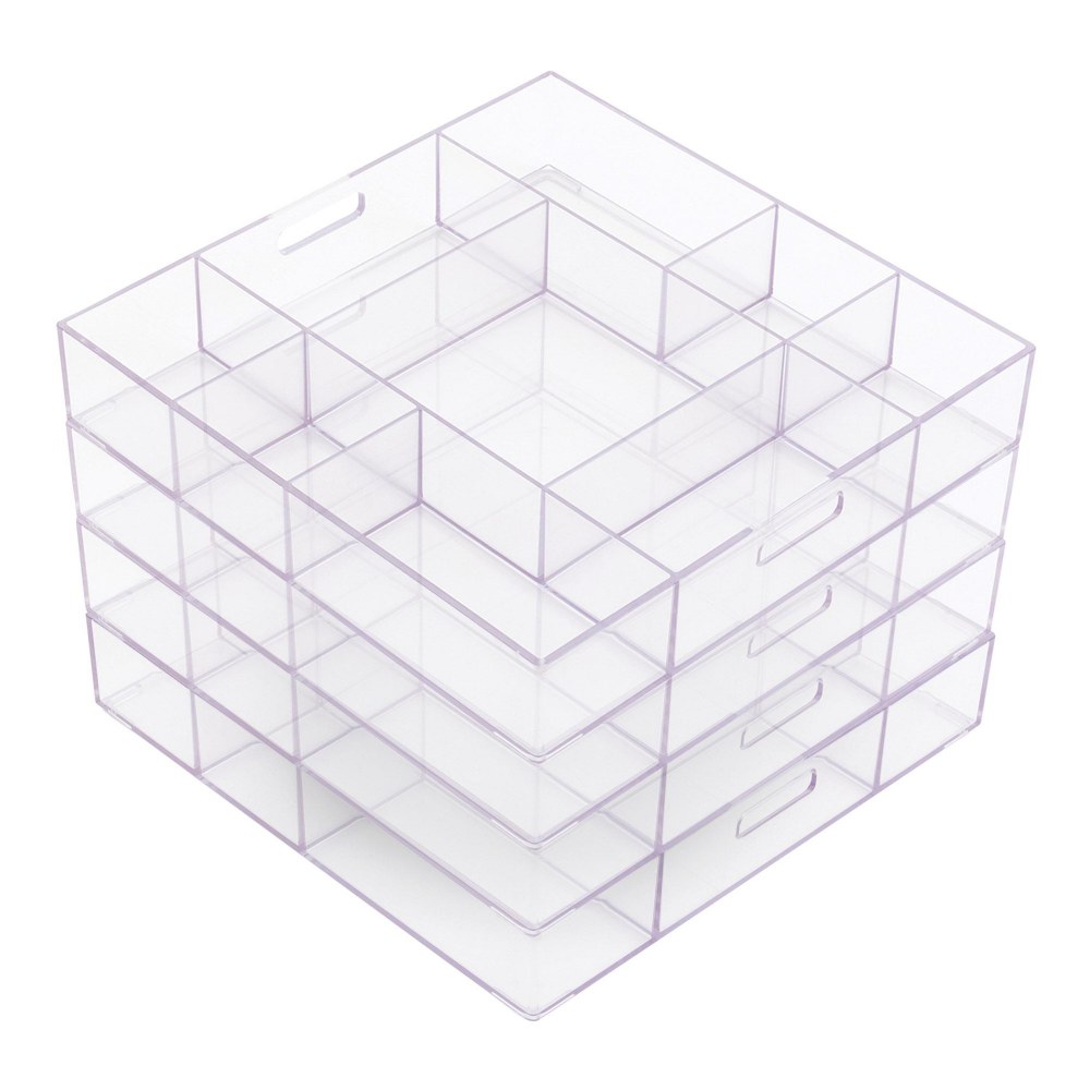 2 years & up. Enhance activities incorporating found loose parts with this Loose Parts Stackable Tray. Made from easy-to-clean Polycarbonate, this tray is the perfect addition to nature-based loose parts play in the classroom and outside. The see-through, compartmentalized tray keeps items visible, accessible and organized while encouraging sorting and seriation of loose parts. Introduce an additional layer of sensory exploration using a light source through the clear plastic. Tray measures 15"L x 15"W x 2.9"H.