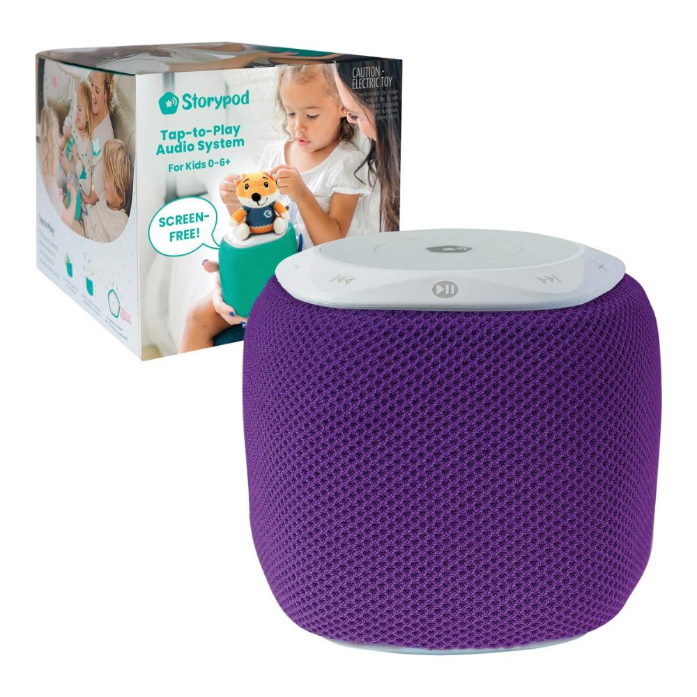 The storypod is suitable for children of all ages, children under 3 years old should only use Storypod under adult supervision. The Storypod is a screen free audio experience for children to enjoy all sorts of audio experiences from bedtime helpers, licensed classics, and brain building originals. There’s something fantastic for every age. And best of all, there’s no microphones, cameras, and no virtual assistants; which makes the Storypod 100% kid safe. The storypod includes a recordable token and a recordable sticker. Parents, grandparents, and teachers can record bedtime stories, read alouds, or a fun message for the children through the Storypod app.