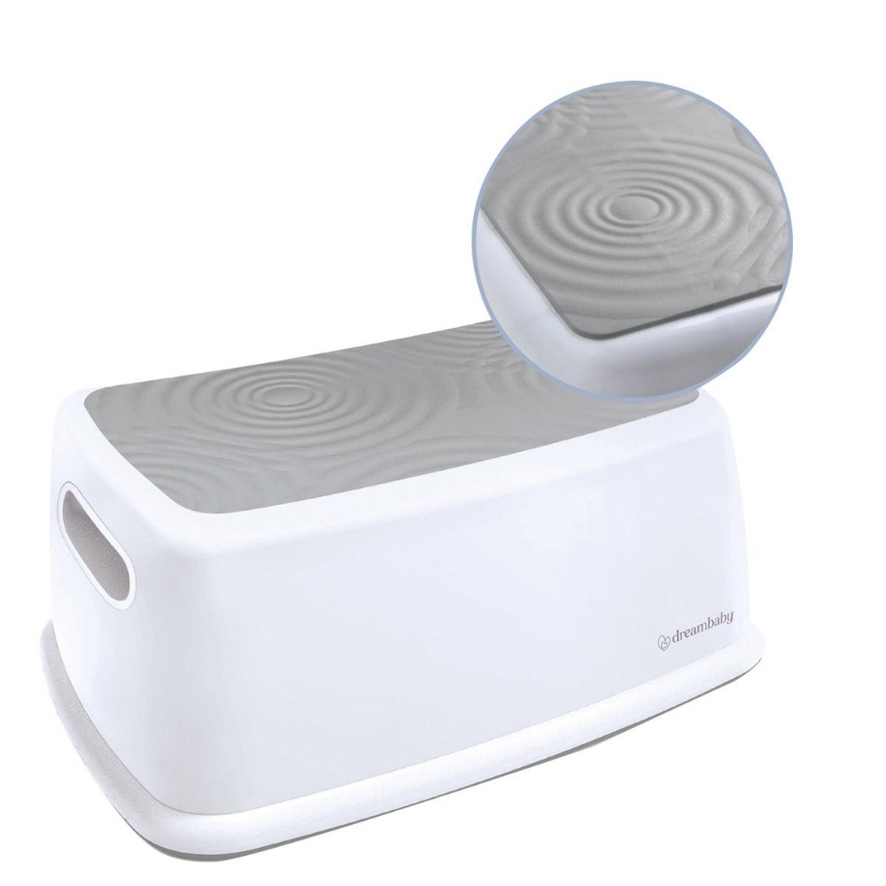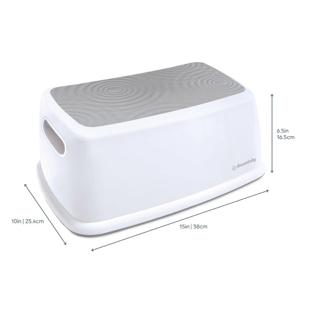 The Toddler & Me™ Step Stool helps little ones take their first confident steps toward independence. Designed with a sure-grip ripple top for secure footing-wet or dry-this durable stool is perfect for everyday routines like toilet training, brushing teeth, or helping out in the kitchen. The contoured shape fits neatly around a toilet base, while anti-slip pads keep the stool steady on any surface. Built to support up to 320 lbs., it's sturdy enough for both children and adults. Easy to clean-simply wash with warm, soapy water and wipe dry.