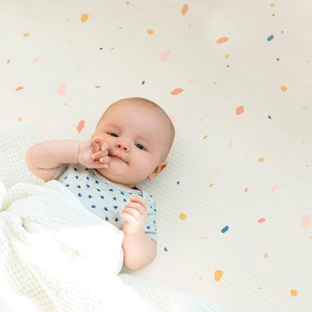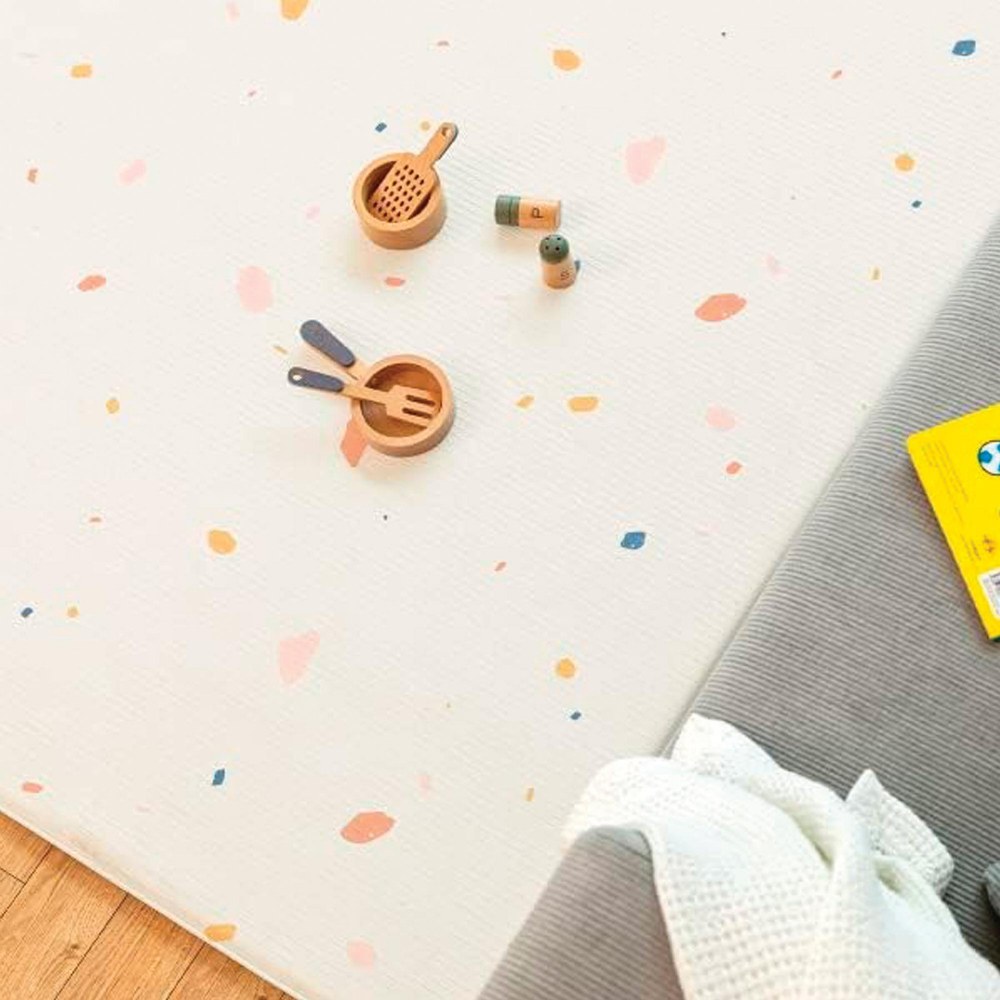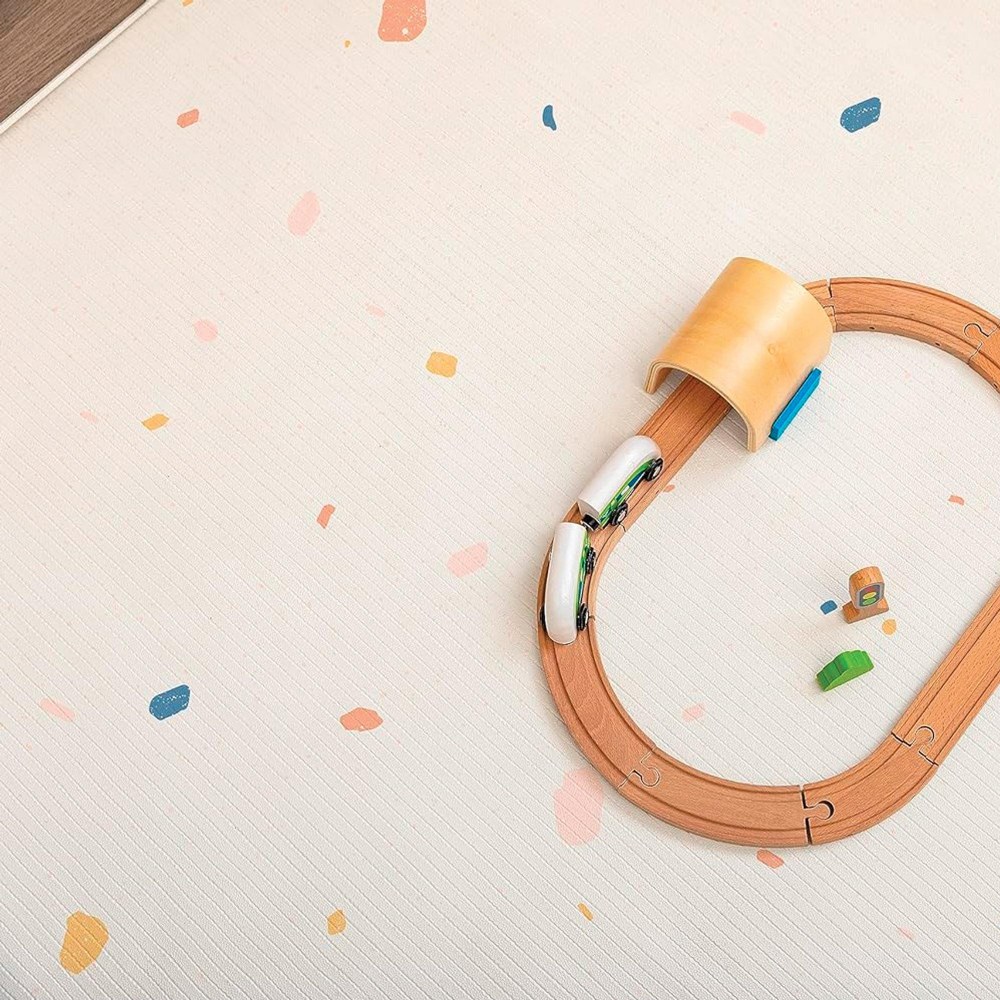 Birth & up.The double-sided play mat is designed to support a safe and developmentally appropriate play environment. Its antibacterial surface helps promote better hygiene during floor-based learning and play activities. It also features high-density cushioning that enhances shock absorption, creating a stable, comfortable foundation for movement, sensory exploration, and early motor skill development. Measures 74.8" L x 51.2" W x .5" H.