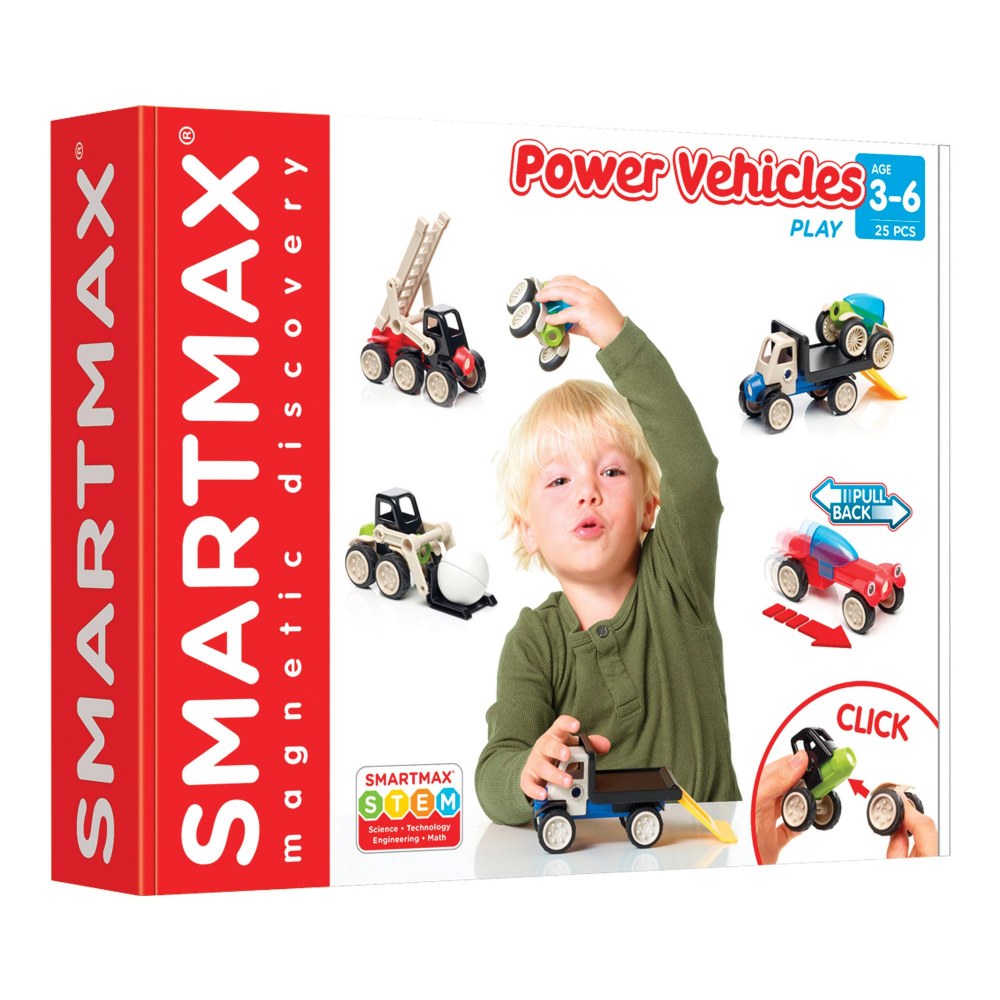 3 years & up. Power up playtime with the SmartMax® Power Vehicles Max Set! This 25-piece magnetic construction set lets children build a whole fleet of vehicles, including a fire truck, forklift, tow truck, pick-up, van, and more. Strong magnetic bars and metal balls easily connect, making it simple for little hands to design, build, and rebuild endless creations. All pieces are compatible with other SmartMax® sets, expanding the possibilities for imaginative play. Perfect for young builders, this hands-on set encourages creativity, problem-solving, and early STEM learning through fun, interactive exploration.