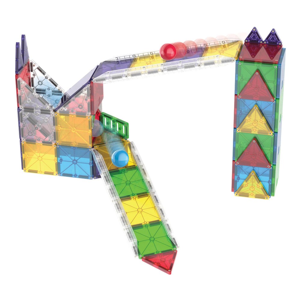 • Create exciting racetracks, ramps, bridges, and towers using clear rails and magnetic tiles designed for hands-on building and racing
