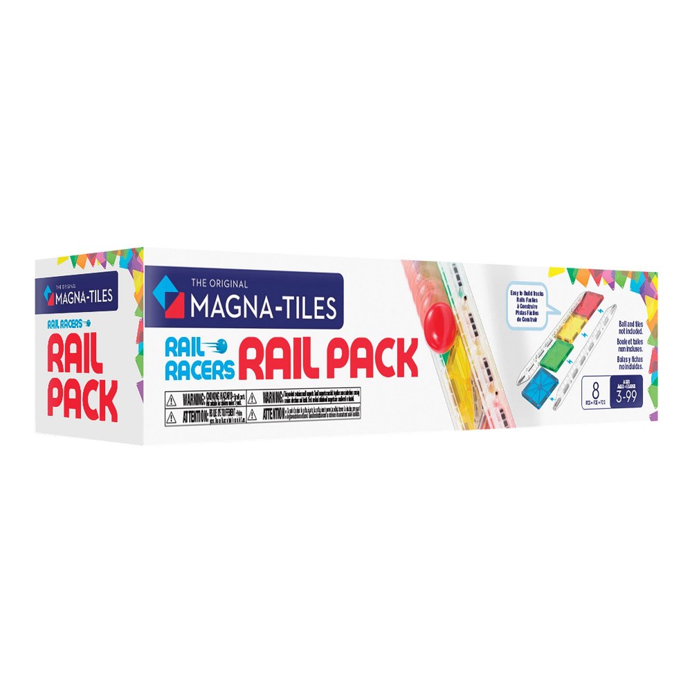 3 years & up. Take racetrack creations to the next level with the MAGNA-TILES® Rail Racers 8-Piece Rail Pack! Designed to expand magnetic building fun, this set includes eight patent-pending clear rails that allow children to build bigger tracks, create longer ramps, and design exciting gravity-defying runs. Perfect for enhancing existing Rail Racers builds, the easy-to-connect rails make it simple for young builders to extend their designs and keep the action rolling. With endless ways to build, race, and experiment, this expansion pack encourages creativity, problem-solving, and hands-on STEM play.