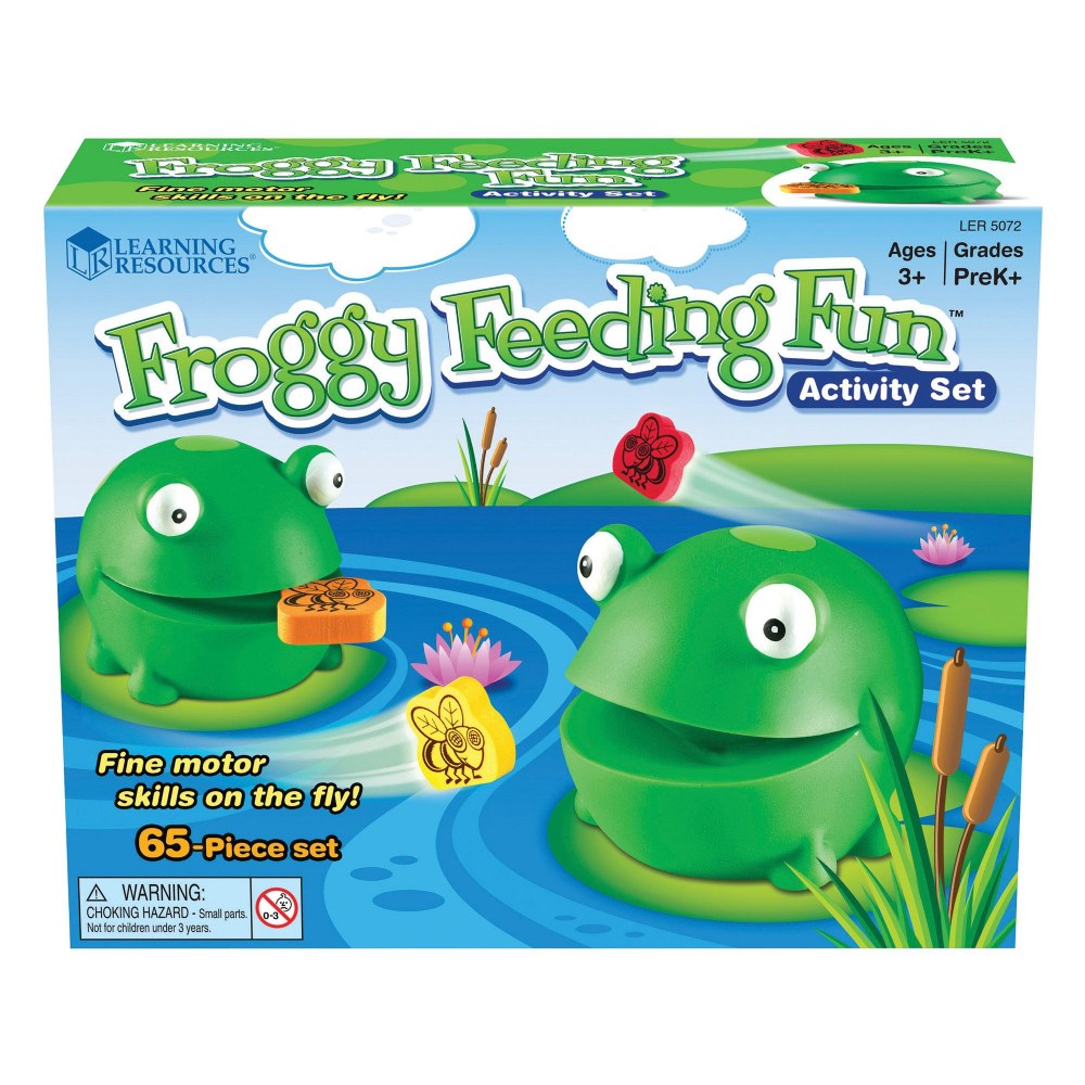 3 years & up. Hop into learning fun! These hungry frogs can't wait to catch some flies. Roll the dice and see which tasty treats they'll gobble up next. As children play, they'll jump into colors, numbers, counting, and sorting, all while strengthening their fine motor skills. The set comes with 2 durable rubber frogs, 60 colorful flies, 1 number cube, 1 color cube, and an activity guide filled with ideas for extended learning and play.