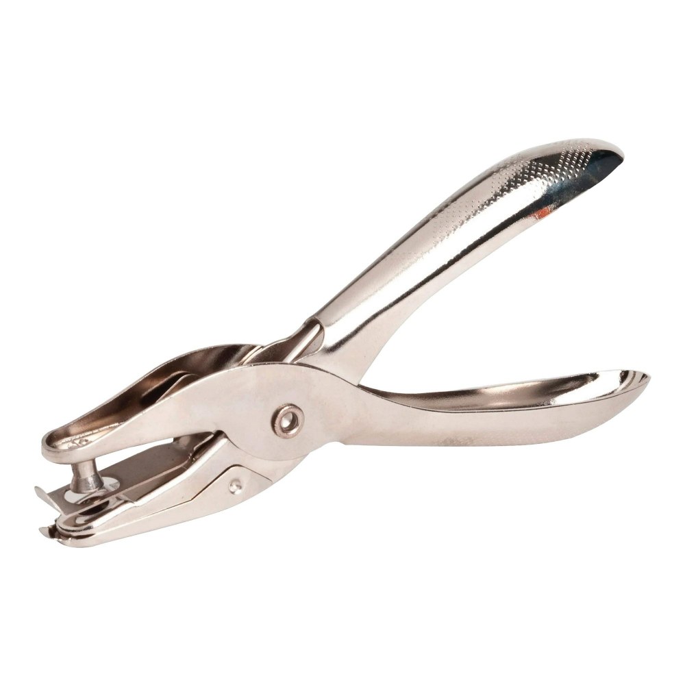 Introduce a new supply into your office spaces with this durable One-Hole Hole Puncher for Crafting and Fitting Papers Into Binders. This hole punch is great for reading confetti pieces, small dots for crafts, and collecting sheets in a binder or folder. This sturdy hole puncher features easy to grip handles.