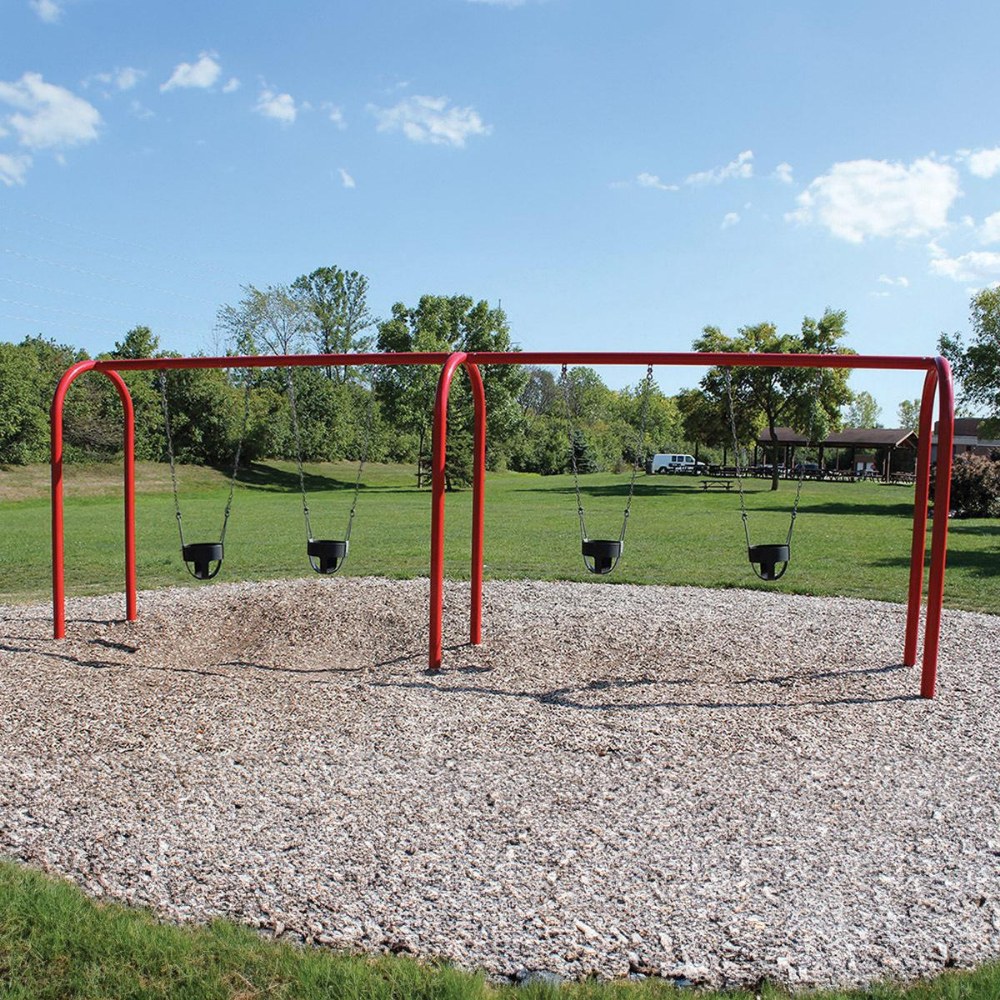 Use Zone: 24' x 36'. Fall Height 6', Capacity up to 4 children. Includes PVC chains and bucket seats. Color options available.