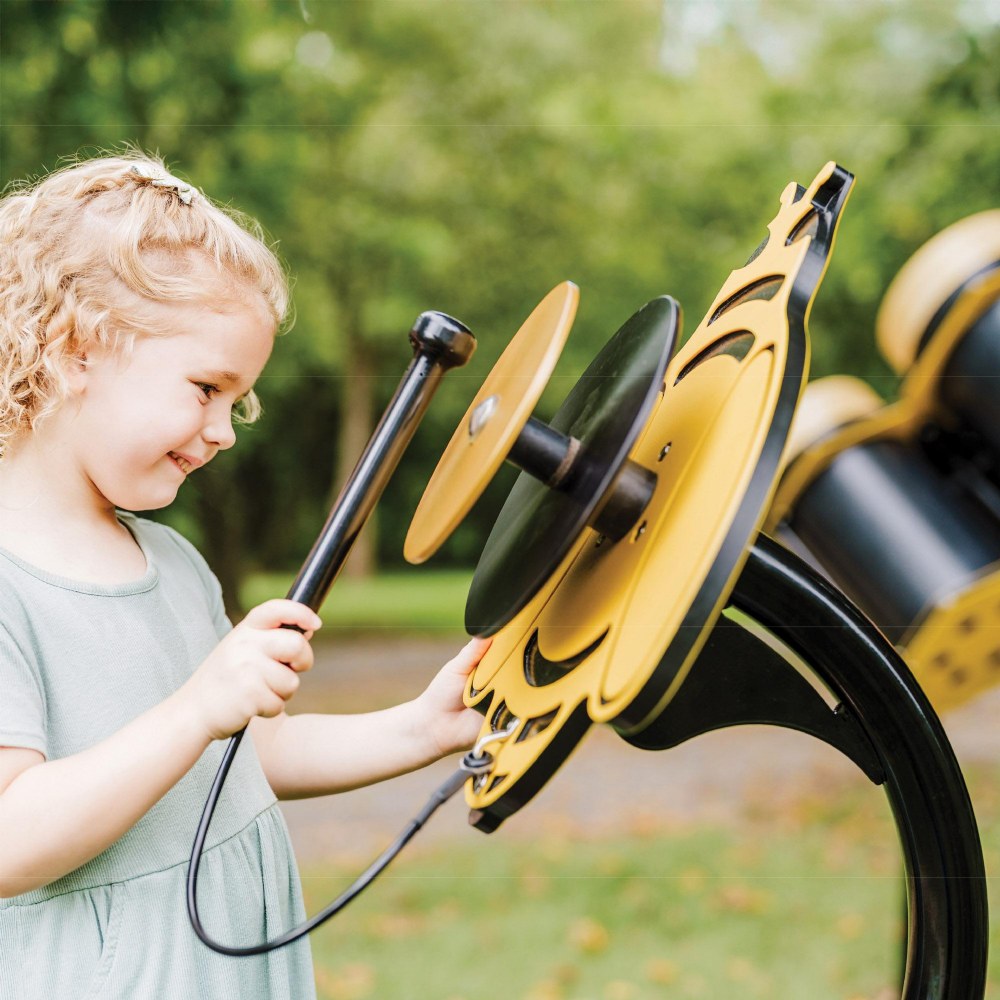 Age: 2-12 years; Size: 13.69"W x 40.81"H x 13"D; In Ground Mount. Made out of Anodized Aluminum. Includes 1 Mallet. Tonal quality is bright and clear. A Power cord (A, E).
